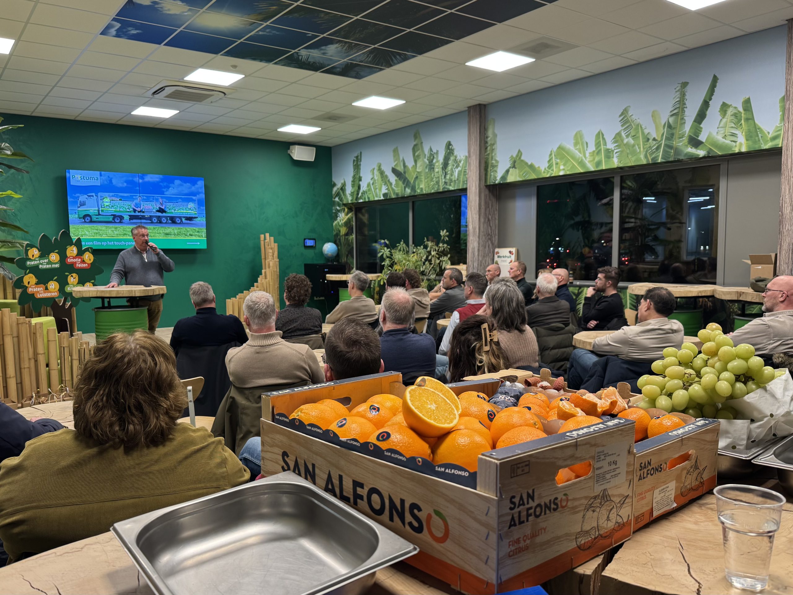 Een mooie en smaakvolle afsluiter van het jaar! We startten bij Groothandel Postuma AGF in IJsselmuiden, waar Sjoerd Postuma ons meenam in het verhaal achter het bedrijf en hun kracht. Tijdens de rondleiding door de loods zagen we de orderpickers in volle actie en kregen we ook een kijkje in het nieuwste deel met de snijkeukens voor vers gesneden groenten op maat. Natuurlijk werd er ook geproefd… en hoe! 🍊🍇